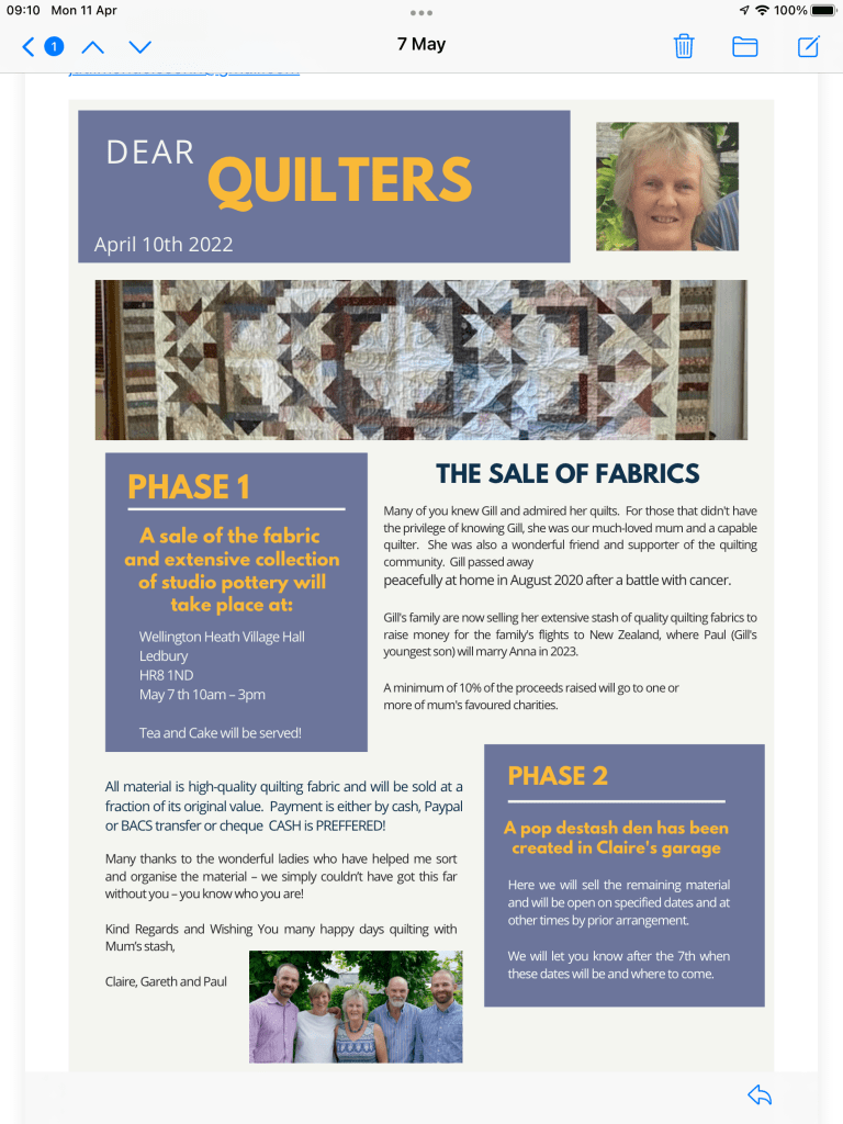 At our sit & sew we had a visit from Rachel Buchanan who spent the evening chatting to members of the group to get their opinions. She is the Programme Development Manager for the Cultural Consortium in Leominster – see their temporary webpage here https://leominsterfestival.org/leominster-roars/. They are surveying residents in Leominster about what they think of Leominster and what cultural activities they do, in order to plan some cultural activities over the next couple of years as part of the Historic England project. They want to make sure they meet a wide range of people from the whole community so they thought our group would be great to talk to, particularly if we might be interested in joining in with some creative projects in the next couple of years.