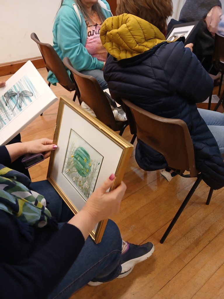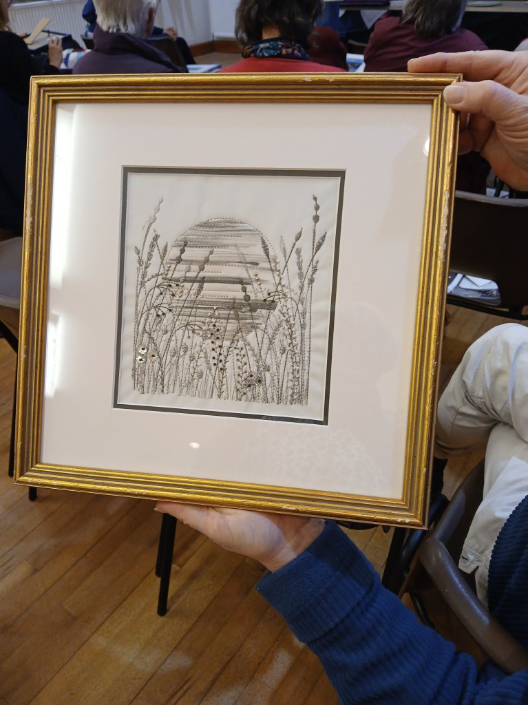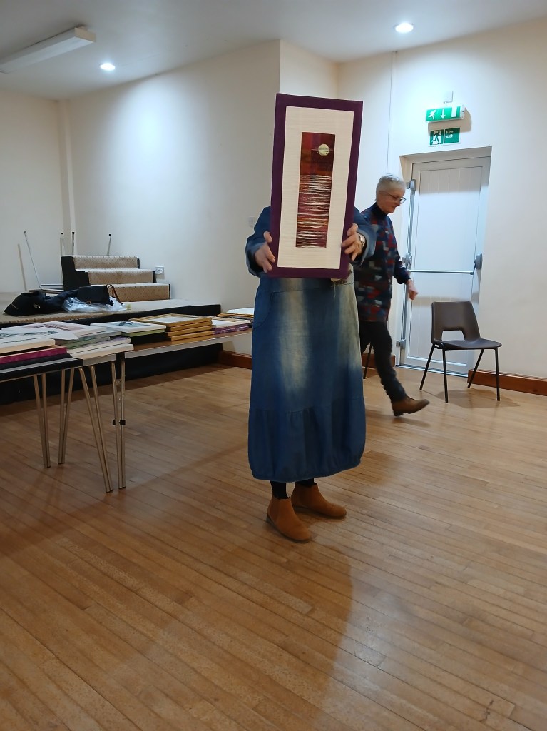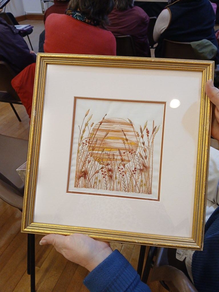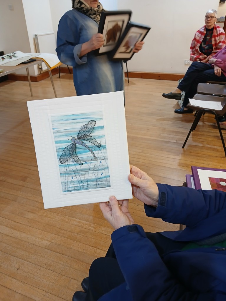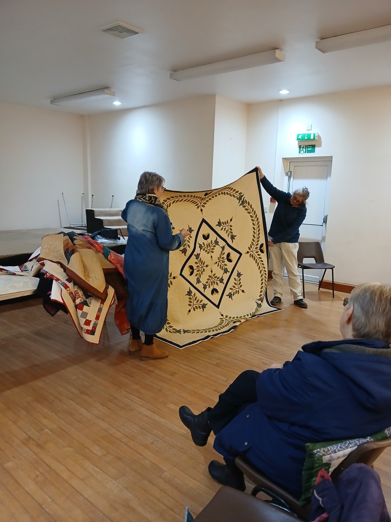 Trease started by outlining her background and explaining how she had started on her quilting journey. She showed us a variety of examples of her extraordinary work and generously went into great detail explaining the techniques she had used, which everyone found fascinating.