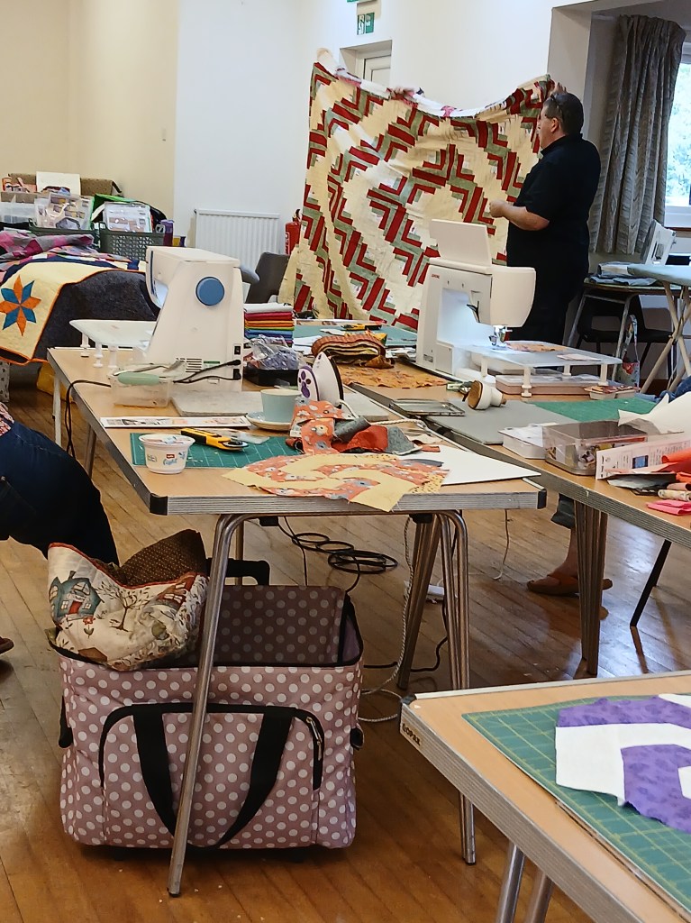 Looking forward to a day of sewing members and guest participants began arriving early ready to set up their workstations. When all members were ready and Crafty UK had their sales table organised Andy and Jo were able to start their workshop.