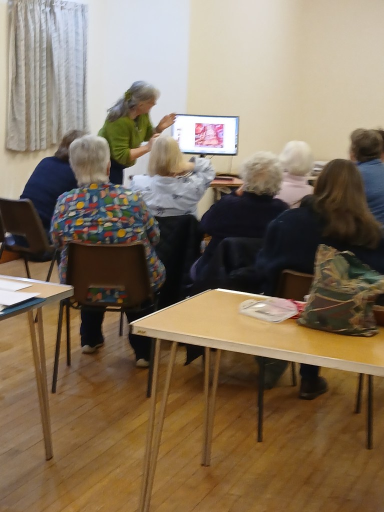 Jo Henshaw had come along to our Sit and Sew evening to invite our interest in participating in the ‘The Herefordshire Calico Dress’ project. She explained this was a new creative community project by Herefordshire Women’s Equality Group, where local women and anyone who supported women’s equality could work together to create a life-sized gown. Jo explained that The Calico Dress was a simplified ‘sister’ version of the Red Dress by Kirstie Macleod. Whilst answering our questions she showed us photographs of how groups had worked together and produced some very attractive gowns. The idea was for groups to embroider or possibly add patchwork to calico panels that could subsequently be formed into a full size gown. She ended by saying she hoped Leominster Quilters would be interested in participating in the project.